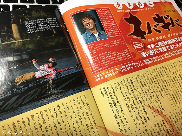 内外出版社さんから発行のルアーマガジン9月号 盛三選手のネバギバのページでカユーガ戦2日目の フィッシュキャッチの写真を提供させていただきました
