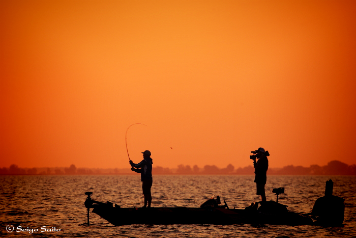 セントクレアは毎日朝陽が綺麗でした 水路を抜けてバスボートを全開で走らせ2分 現在年間ポイント1位を走るテキサスのベテラン クラーク・ウェンドランド選手の毎朝のスタートポイント 最終日はシルエットから撮影してみました