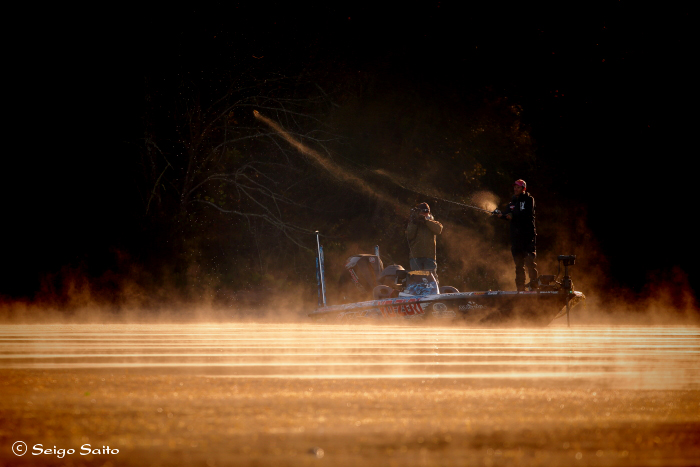 二日目は初日のリーダーの ブランドン・カブ選手から撮影 朝から霧が濃すぎて大変でしたが なんとか画になる写真も撮れました いやぁそれにしても魚を釣る瞬間が撮れない 久々に釣れない試合でタイミングも合わない 明日は釣り上げる瞬間見れるかなぁ