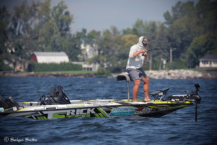 初日2位につけたアレックス・レッドワイン選手 少し張り付いていたらフィッシュオン! デビュー2年目の選手でたまに爆発する さぁ明日からも釣って来れるか?
