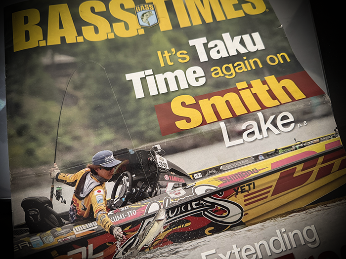 バスマスター発行のバスタイムス誌9月号 表紙はスミスレイク戦を制した伊藤巧選手 湖上の実釣シーンのいい感じの写真を選んでいただきました