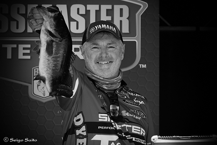 Faces of the Elite – Mark Menendez エリート選手の表情をモノクロで ベテランのマーク・メナンデス選手の ステージ上の魚持ちは100点満点