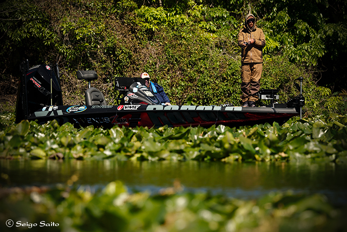 大会2日目順位を上げてきたのは セス・ファイダー選手 リリパッドを撃ち続けて 初日とほぼ同じ18ポンドオーバーで 3位に浮上してきた 明日から少しづつ気温も上がるので フロリダらしい釣りができるかも