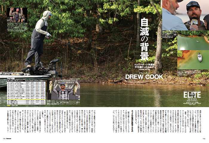 つり人社さん発行のバサー8月号 エリート第4戦のハートウェル戦 優勝する勢いだったドリュー・クック選手の 試合運び詳細掲載