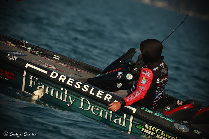 セントクレア戦のティム・デュービー選手 朝から20ポンド近く非公式ウエイトが入力され 撮影に向かうとすぐにフィッシュオン!