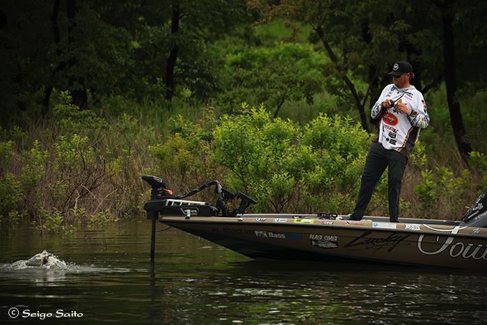 バスマスターエリート・テンキラー戦 カリフォルニア州出身のルーキー アンドリュー・ロバーグ選手のファイトシーン 優勝するだろうとかなり長い時間張り付いた 最終日に釣果が伸びず残念な結果に なかなか強い釣りを押し通していたので 撮影も楽しかった