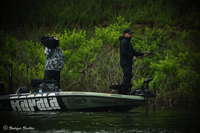雨で大増水のテンキラー戦 ボブ・ダウニー選手はシャローに 挿すバスをショアラインで狙う