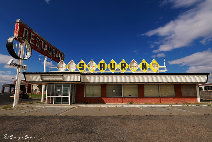 ニューメキシコ州サンタローサ 10年以上前に来た時はまだオープンしていた ルート66レストランだったが2019年クローズ レトロな格好いいサインも5文字が割れてしまっていた なんとか復元して状態を向上してもらいたいなぁ