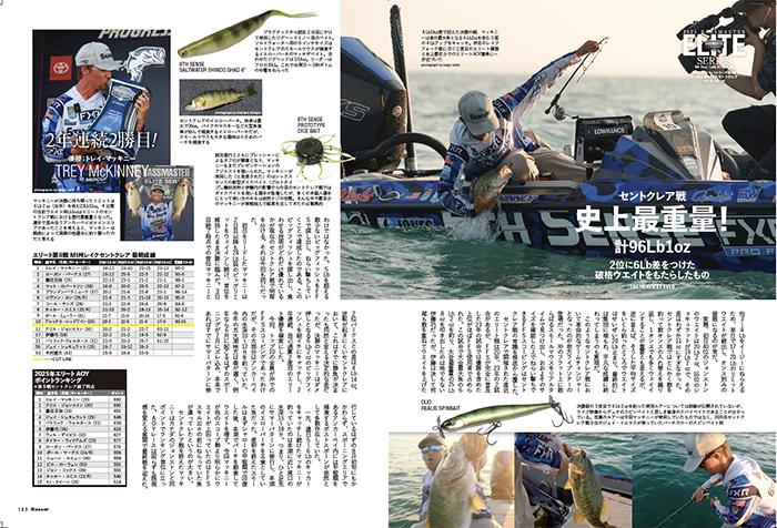 つり人社さん発行のバサー12月号 バスマスターエリート第8戦の トレイ・マッキニー選手の優勝の詳細掲載