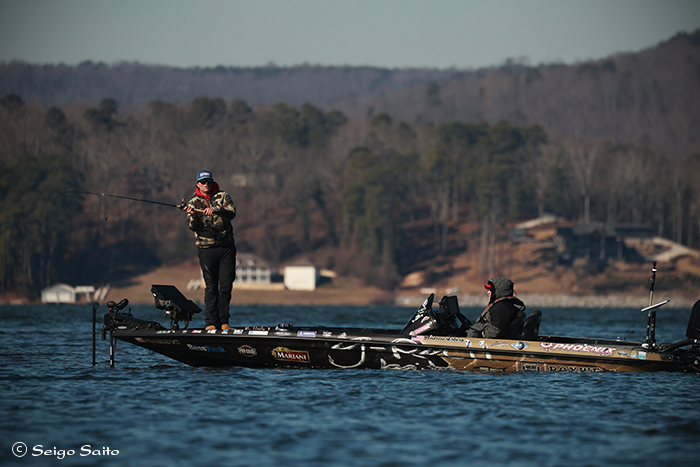 レイク・ガンターズビル戦 水中岬を攻めるアンドリュー・ロバーグ選手