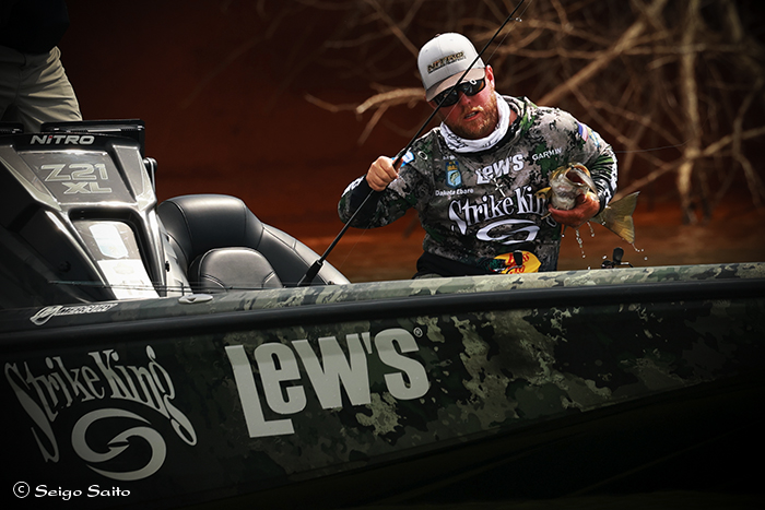 バスマスタークラシックで7ポンドオーバーの ミーンマウスバス(スモールとスポッツのミックス)を 釣り上げたダコタ・イベア選手